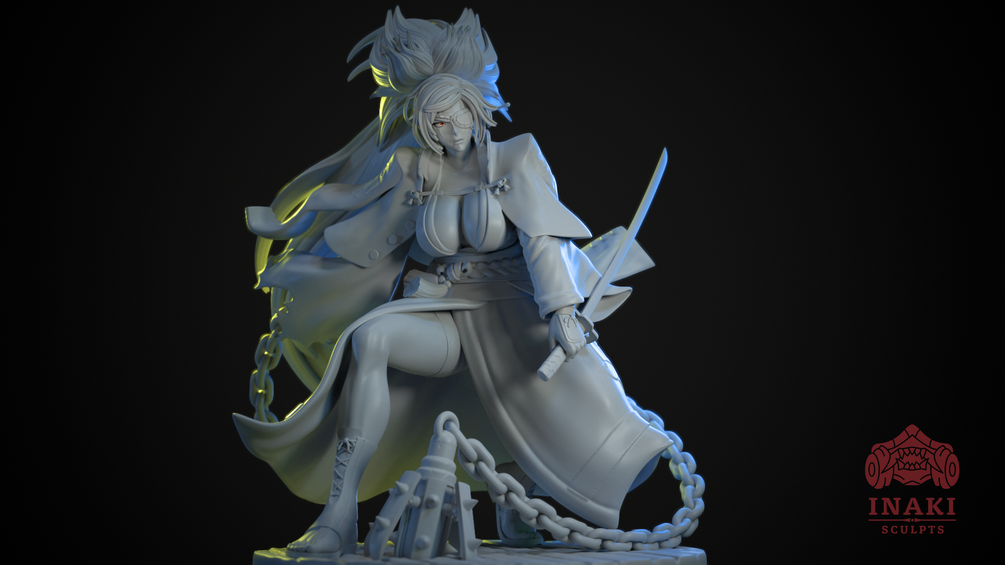 3D Printable figure of Baiken from Guilty Gear. Includes Splitted, Unsplitt and PreSupported version. Default Scale 25cm.