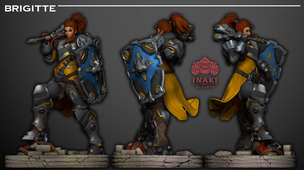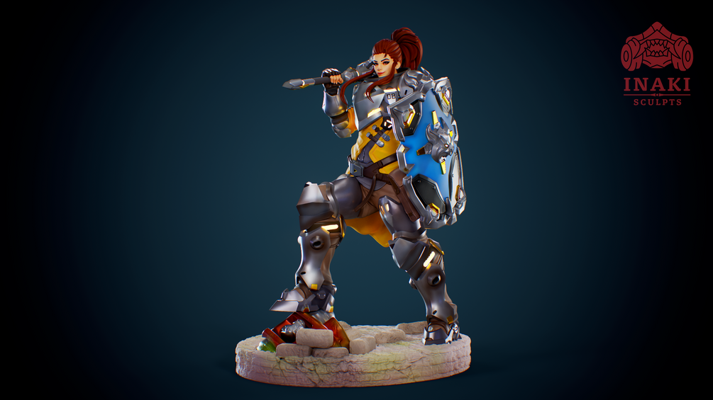 3D Printable figure of Brigitte from Overwatch 2. Includes Splitted, Unsplitted. Default Scale 24cm.